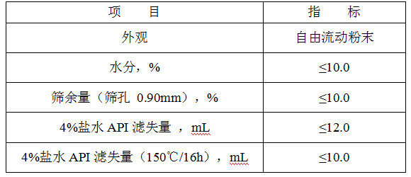 后附抗鹽聚合物降濾失劑技術指標和性能特點。