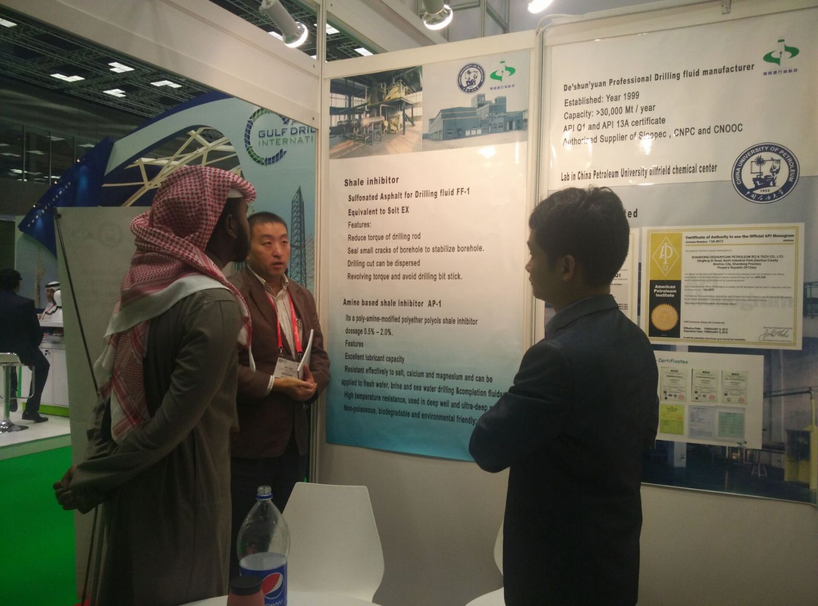 通過參加此次展會,我們同Qatar petroleum, Gulf international drilling等當地客戶進行了深入友好的交流,客戶對我公司研發的抗高溫鉆井液材料非常感興趣,希望取得樣品并有更深一步的合作。