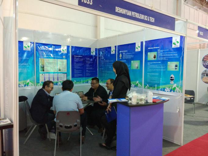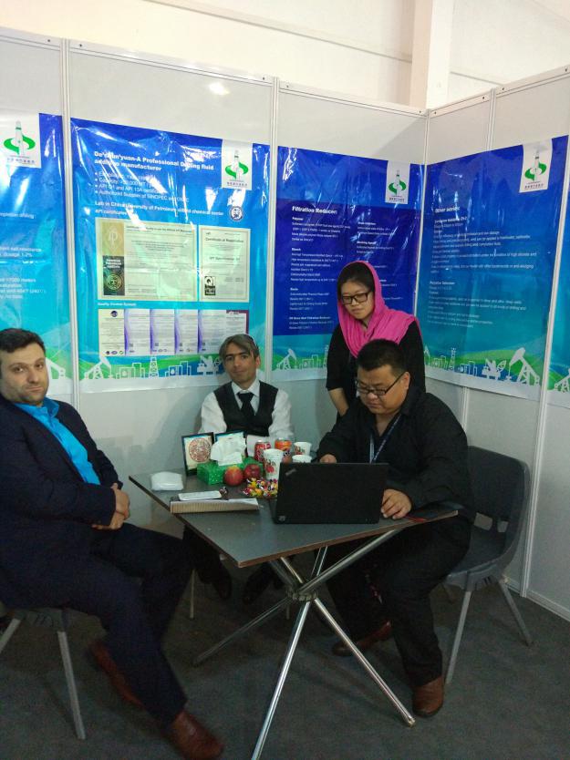 本次展會為我公司第一次參加伊朗石油展會,主要展示產品為我公司自主研發的主打產品七大體系19種種產品,如鉆井液用降濾失劑磺酸鹽共聚物DSP系列,低粘共聚物降濾失劑,抗高溫淀粉系列,腈硅聚合物;防塌劑系列如磺化瀝青,頁巖抑制劑鋁基聚合物;高密度鉆井液用極壓潤滑劑等等。