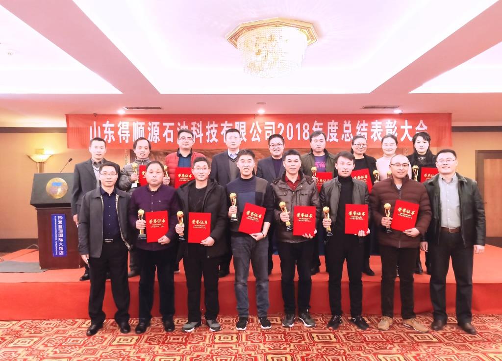 2019年1月26日下午,公司在藍海國際會議中心組織全體員工召開了“山東得順源石油科技有限公司2018年度總結表彰大會”,會上對在2018年度工作中表現突出的優秀員工、銷售精英等進行了表彰和頒獎,優秀員工代表也做了精彩的發言,這些受到表彰的先進典型,在各自的工作崗位上取得了優異的成績,起到了非常好的模范帶頭作用。