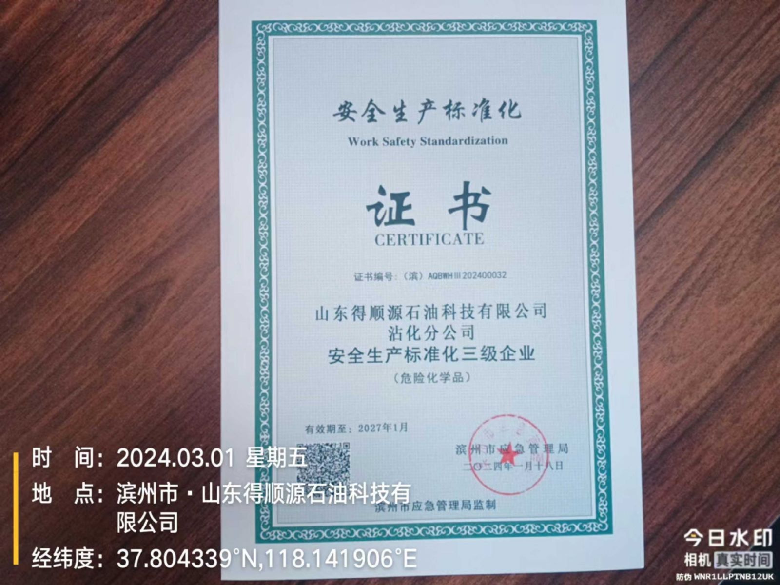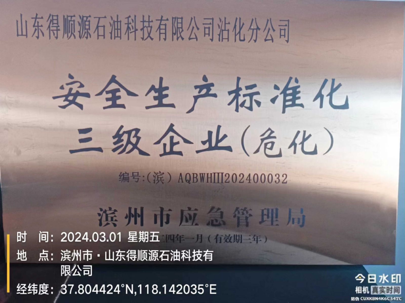 山東得順源石油科技有限公司沾化分公司順利通過濱州市應(yīng)急管理局組織的“安全生產(chǎn)標準化三級企業(yè)”換證復(fù)審。